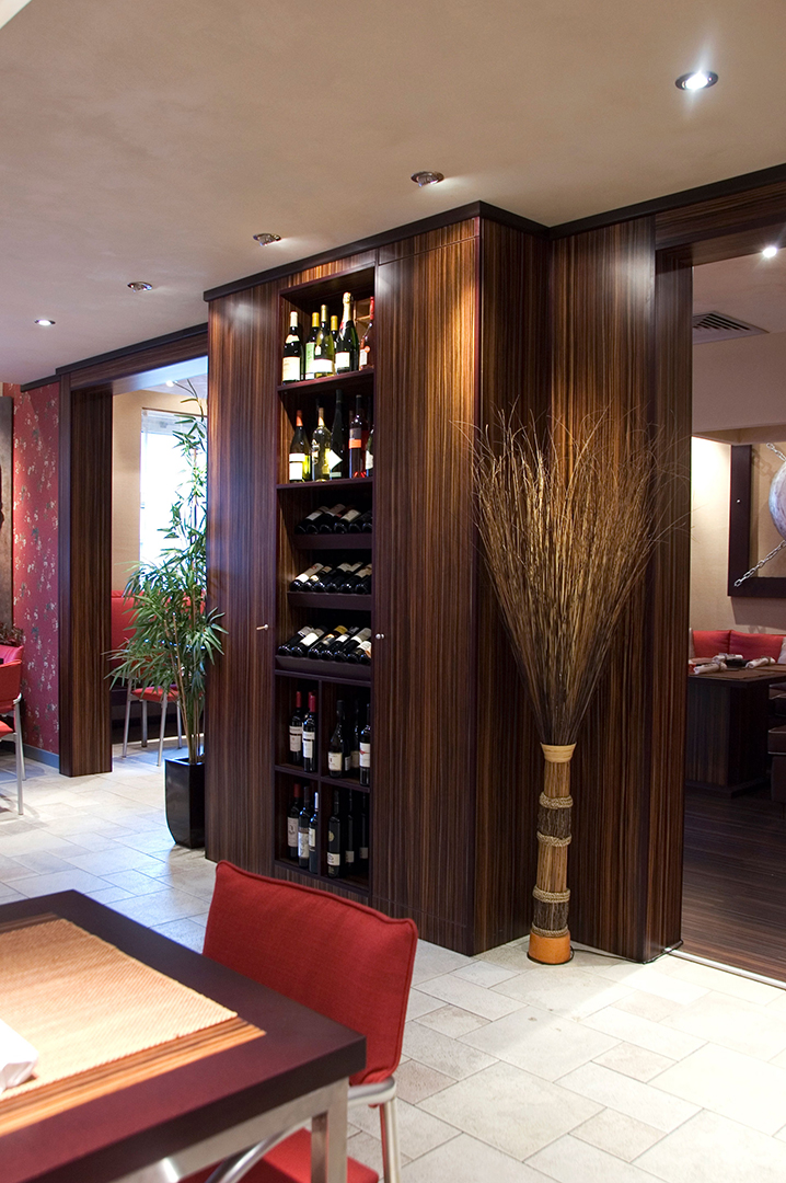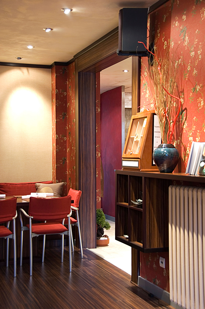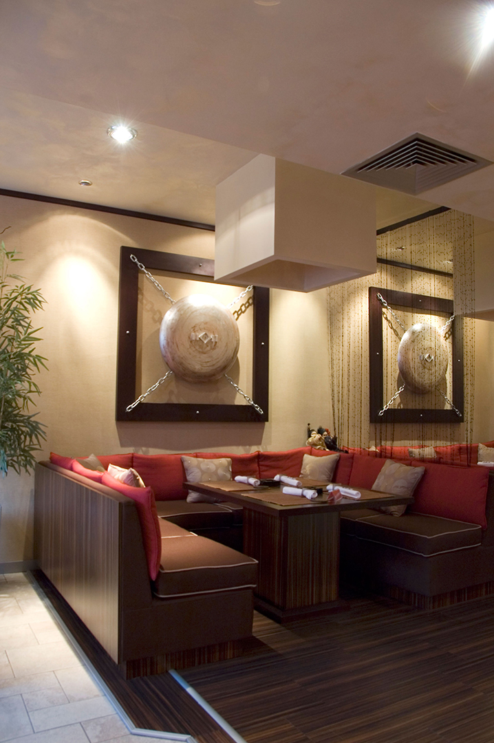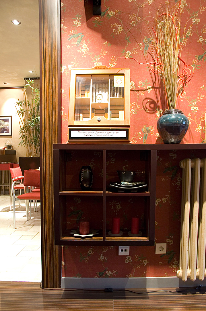 Kombinovanjem jednostavnih linija i formi, stvoren je razigran dizajn ovog enterijera koji pleni dobrom atmosferom i unosi osećaj razdraganosti u prostor. Uklapanjem boja i tekstura, uz korišćenje „živih“ boja na jastučićima, diskretnom rasvetom, i uticajem azijske kulture, stvoren je prostor koji poziva na druženje i uživanje.